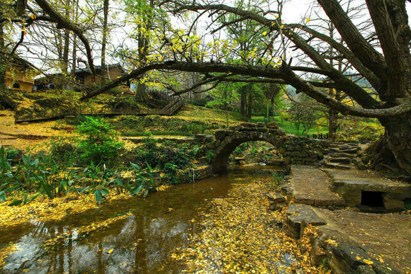 妥乐古银杏村位于有中国凉都之称的贵州省六盘水市盘县石桥镇的妥乐村,这里流水潺潺,古树绵绵,小桥映虹,奇峰傍寺,是贵州省著名的风景名胜区。全村生长了1450多株连片成林的古银杏林,一般树龄在300年以上,最长者有1200余年,植株高大,胸径一般在100—200cm,最大220cm,树冠高度15—30米,是世界上古银杏生长密度最大、保存最完好的地方,享有“世界古银杏之乡”的盛誉。妥乐古银杏风景区处在盘县古银杏风景名胜区的中心地带,主景区内有古银杏1450株,是全世界古银杏最集中的地方,形成世界上十分罕见的博大精深的“人树相依”的树文化,素有“世界活化石基地”之称。