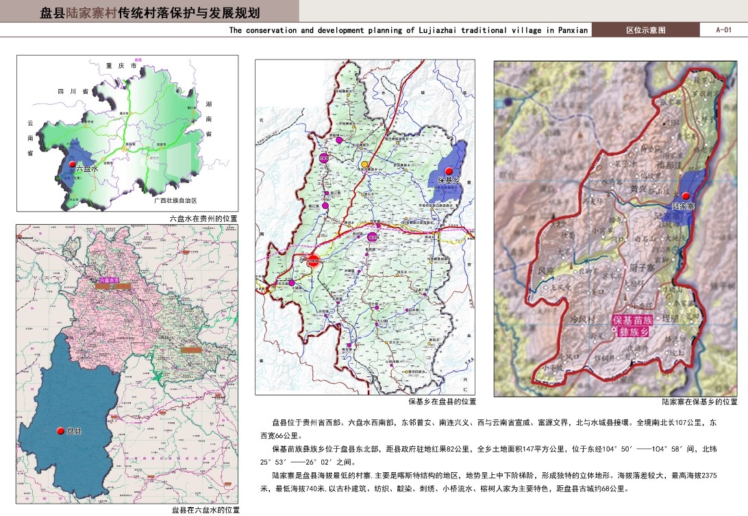 本次规划的贵州盘县保基乡陆家寨,即是被列入第三批中国传统村落目录的村落之一。与陆家寨同时被列入的盘县境内的传统村落还两个:盘县羊场布依族白族苗族乡陆家寨和盘县石桥镇陆家寨。