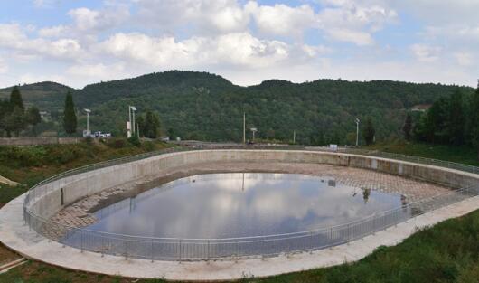 盘州市红果、亦资、翰林、两河、胜境5个街道共实施2017年饮水安全工程36个项目,投资近4000万元,新建、修复蓄水池59个,新建和改扩建水厂3座,安装加压泵站6座,安装不同输水管道近600公里,建成后可解决4.6万人的饮水安全问题,其中贫困人口近7000人。目前,各个工程建设正有序推进,确保今年年底建成供水。图为已建成蓄水投入使用的小街子山塘。 (吕文春 摄)