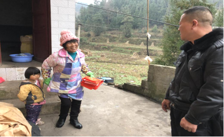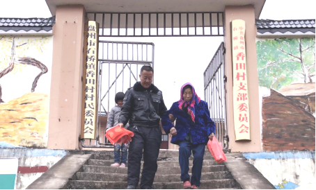 盘州市公安局民警何江一手提着帮其他贫困户领的春联,一手搀扶着老人,从村活动室走了出来。老人手里拿着视若珍宝的春联十分高兴的说着这新的一年新的期盼,何江不仅提前向老人送上新春的祝福,还亲自将老人送回了家。老人激动的对旁人说着:“这小何呀,像是我的另一个儿子,感谢党的惦记,感谢国家的政策,感谢小何的时时牵挂呀……”。