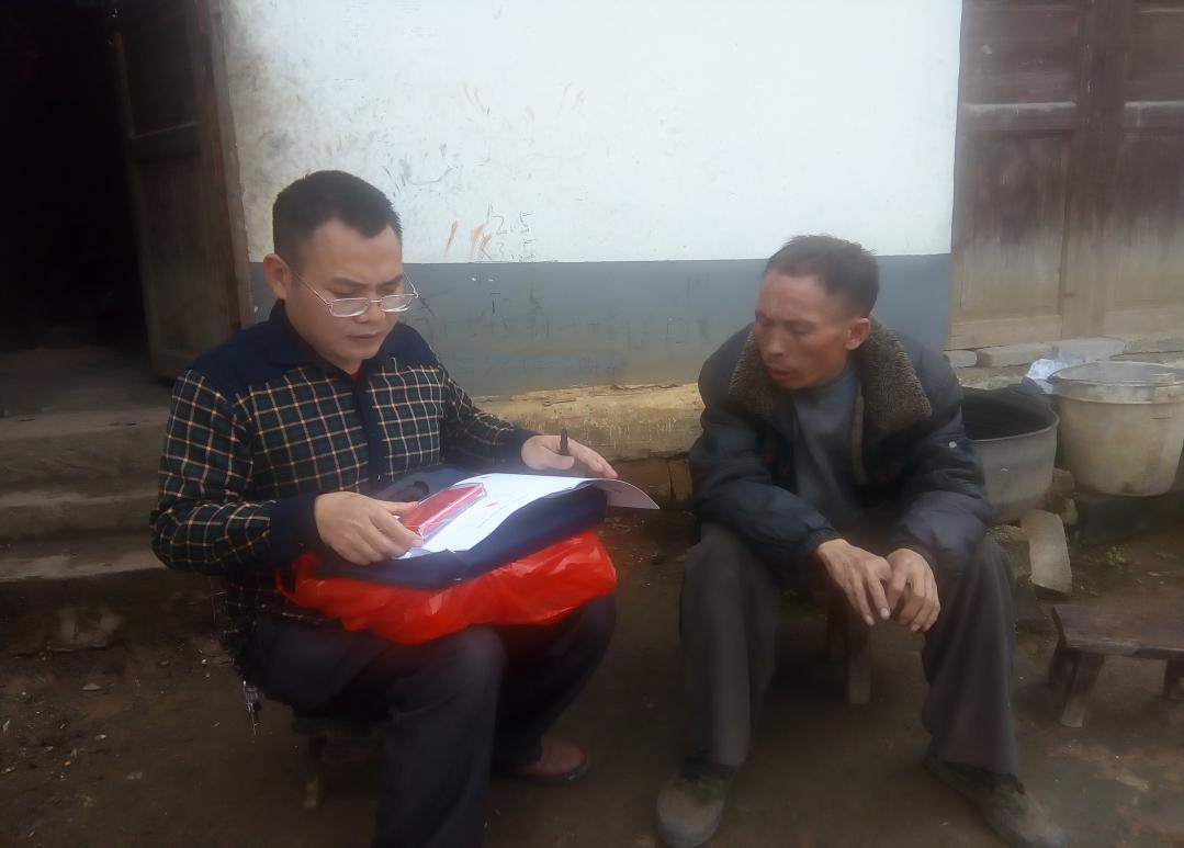 (图为帮扶人余兆红为李兴奎讲解扶贫政策)