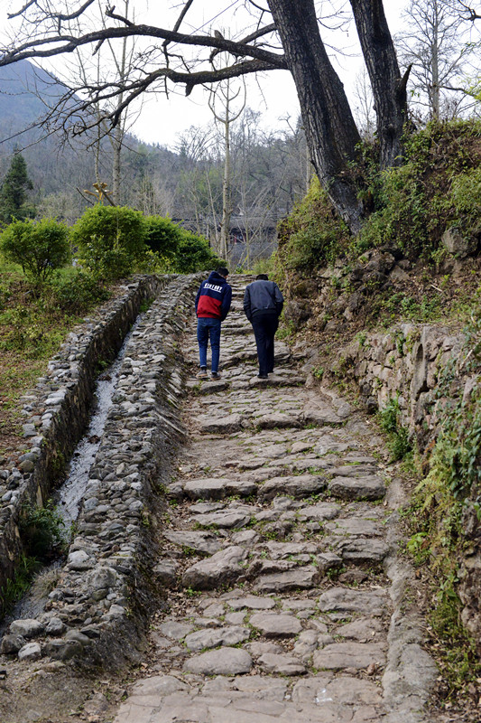 石桥镇妥乐景区妥乐村中有一条古驿道,给景区增添了历史感。古驿道的石板已非常光滑,见证了历史的厚重和岁月的沧桑,游客纷纷前去行走体验。( 邓永长 摄)