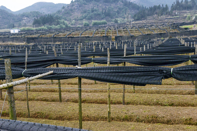 丹霞镇铁厂村村民杨军等投入1000余万元资金于2017年在该村流转土地408亩种植三七,惠及农户100余户,长期解决了30余名贫困户就业。( 邓永长 摄)